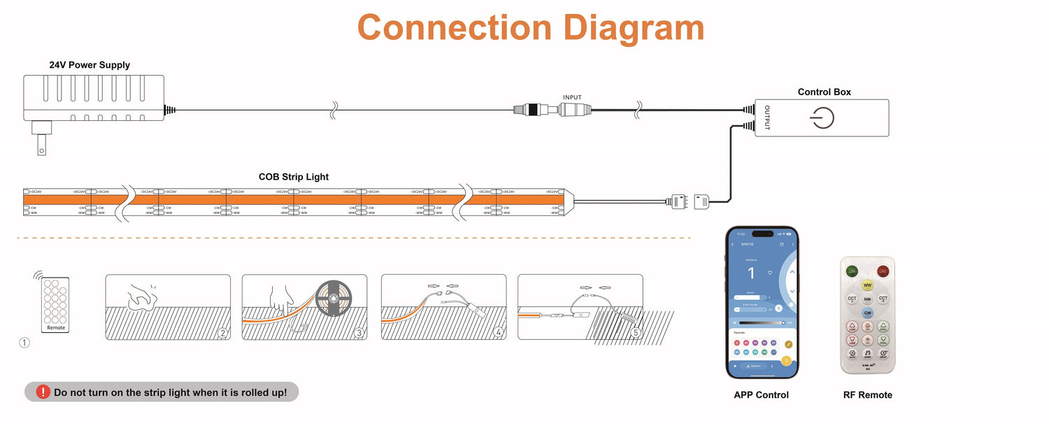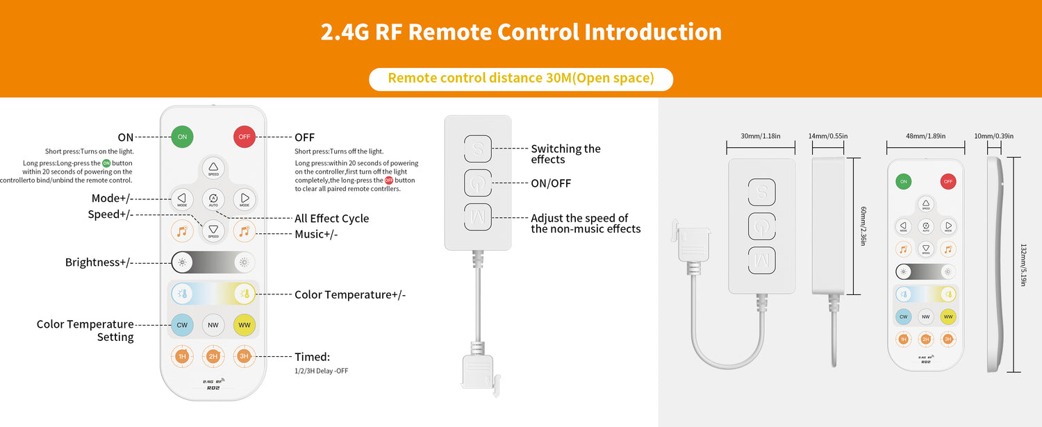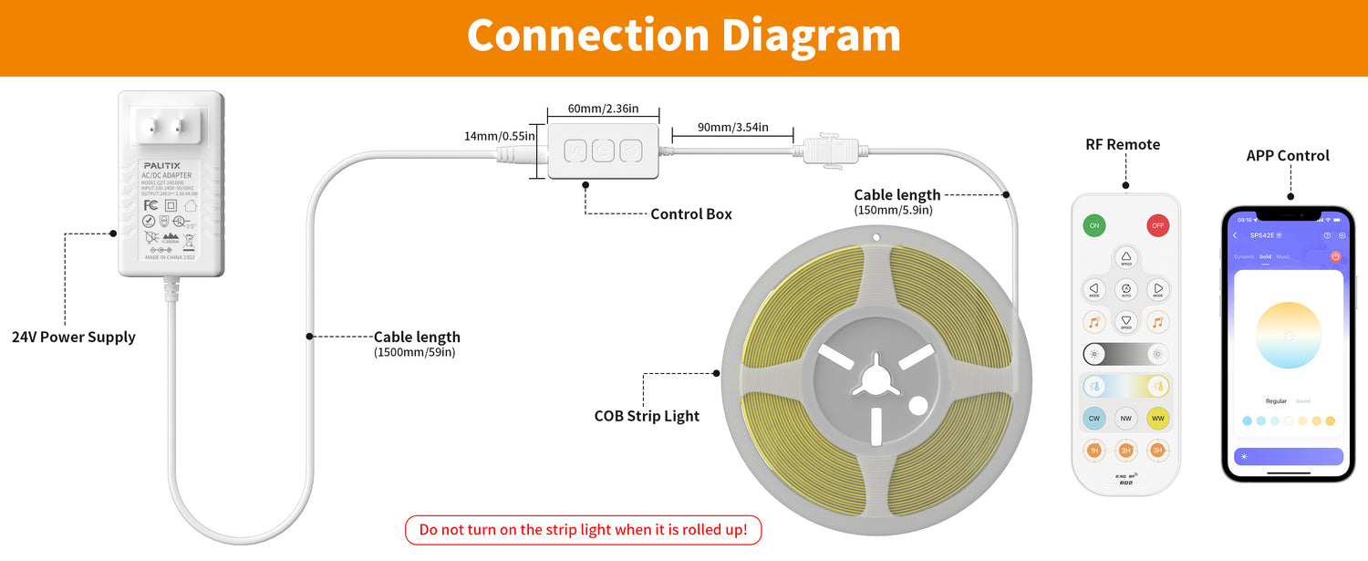 - 【What You Get】1 x PAUTIX 32.8ft Tunable White COB LED Strip, 1 x 24V/3A Power Supply,1 x RF Remote Controller, 1 x Controller Receiver,1 x User Manual.We provide lifetime customer service