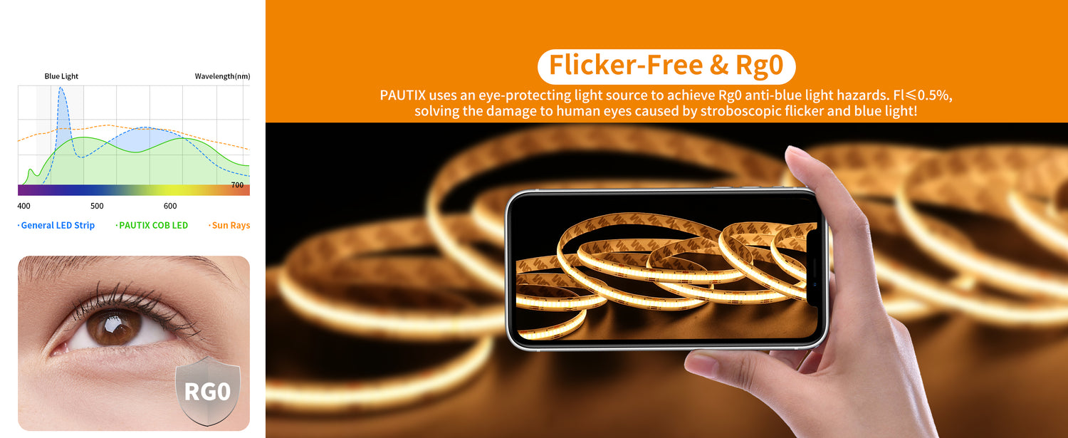 - 【Widely Use & Durable】PAUTIX Tunable COB LED Strip light is ideal for high-end business clubs,under cabinet,dressing mirror,make-up table,closet,bookshelf,wine shelf,TV backlight and other places need decoration. Real double-layer PCB board and high-quality materials make PAUTIX COB led strip light durable,the lifespan is more than 65,000 hours