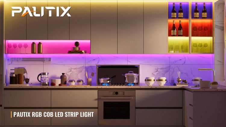- 【Easy to Install】With stronger 3M adhesive,PAUTIX RGB COB LED strip lights can be reliably installed on mirrors, walls, cabinets,other dry and clean surfaces that need decoration.PAUTIX COB LED strip lights can be cut every 1.97in(50mm) along the cutting marks for your need.The cut strip light can still be reconnected and used. You can manually weld at metal points or connect using solderless connectors (ASIN: B0B65CZFS7).