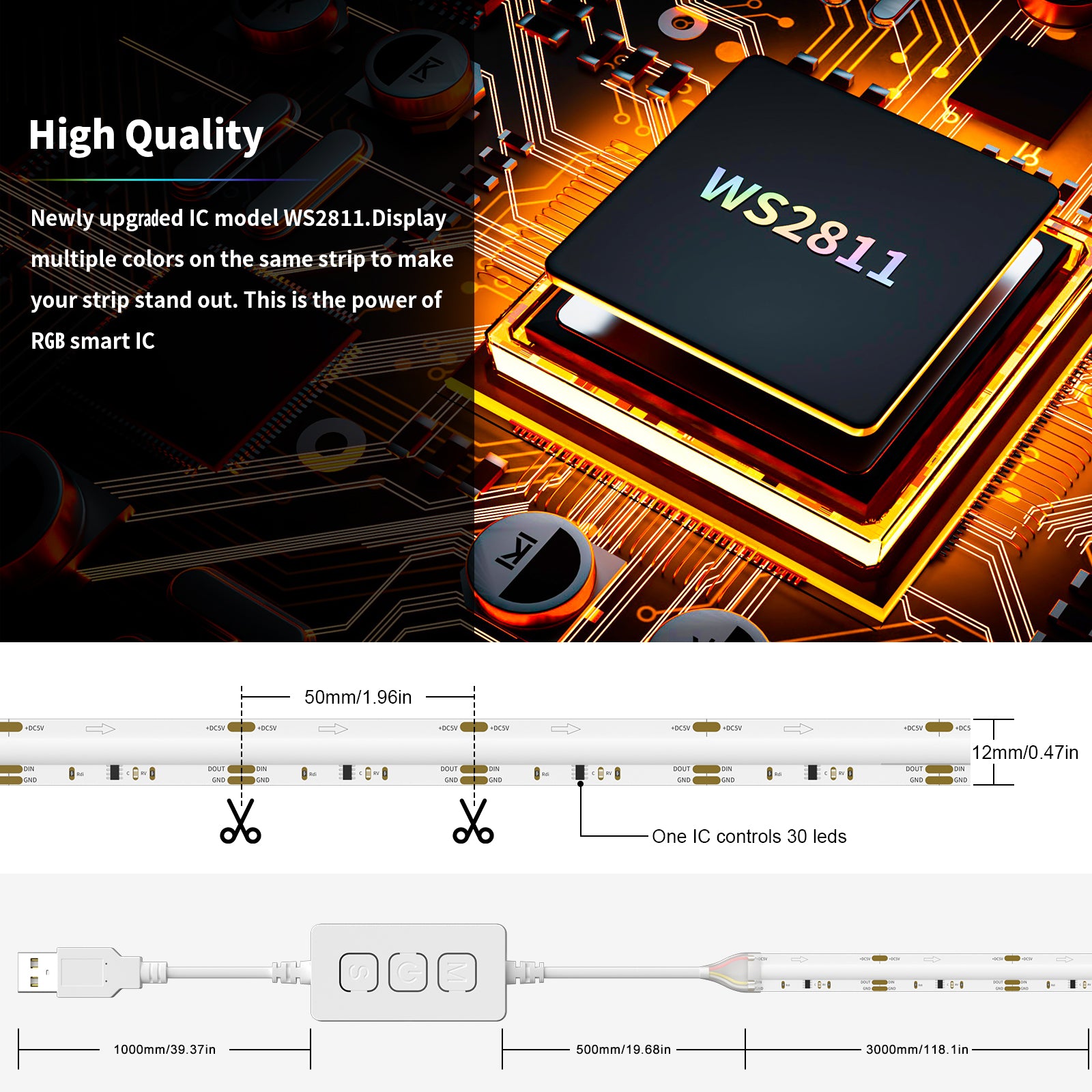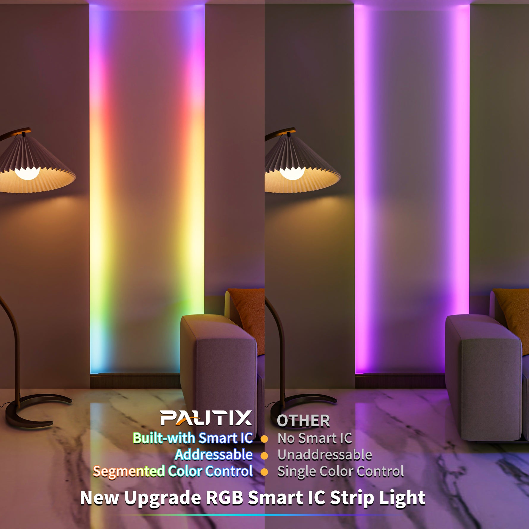 PAUTIX 5V USB RGB Smart IC COB LED Strips Light,6.56ft/2m,Work with Alexa/Google Assistant
