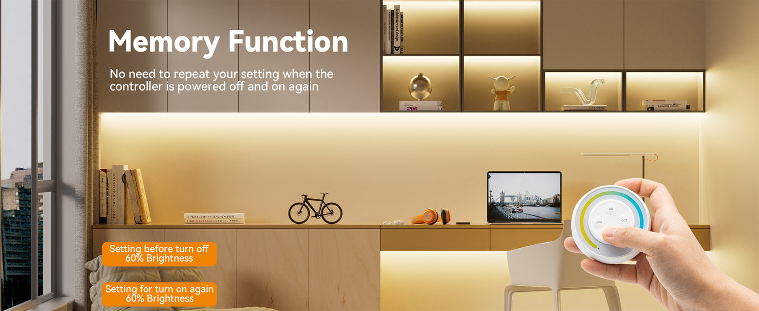 - TOUCH DIMMING:Supports two types strip lights, single color temperature LED strip lights and CCT LED strip lights. The touch dimmer frees you from the tedious operation of multiple buttons, and you can easily slide the dimming panel to set the brightness or color temperature of the strip light.