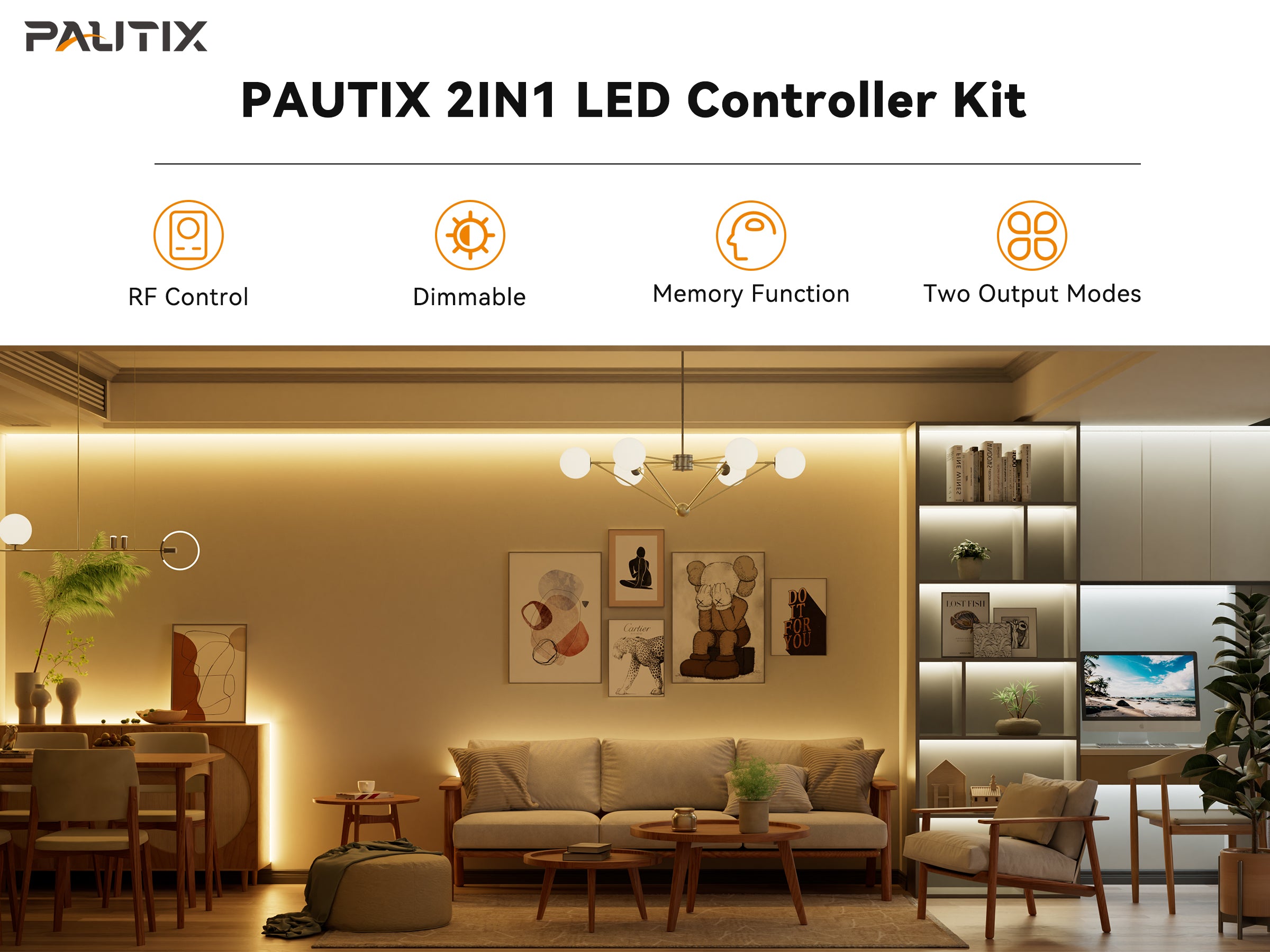 - PAUTIX 2 IN 1 LED CONTROLLER KIT:Compatible with two types of LED strips including single color temperature LED strips, CCT LED strips. Included in the kit is a controller and half-touch RF remote/dimmer. Freely set the color, brightness you want in different modes(Please read the settings in the manual carefully and choose the correct mode according to the strip light you connected).