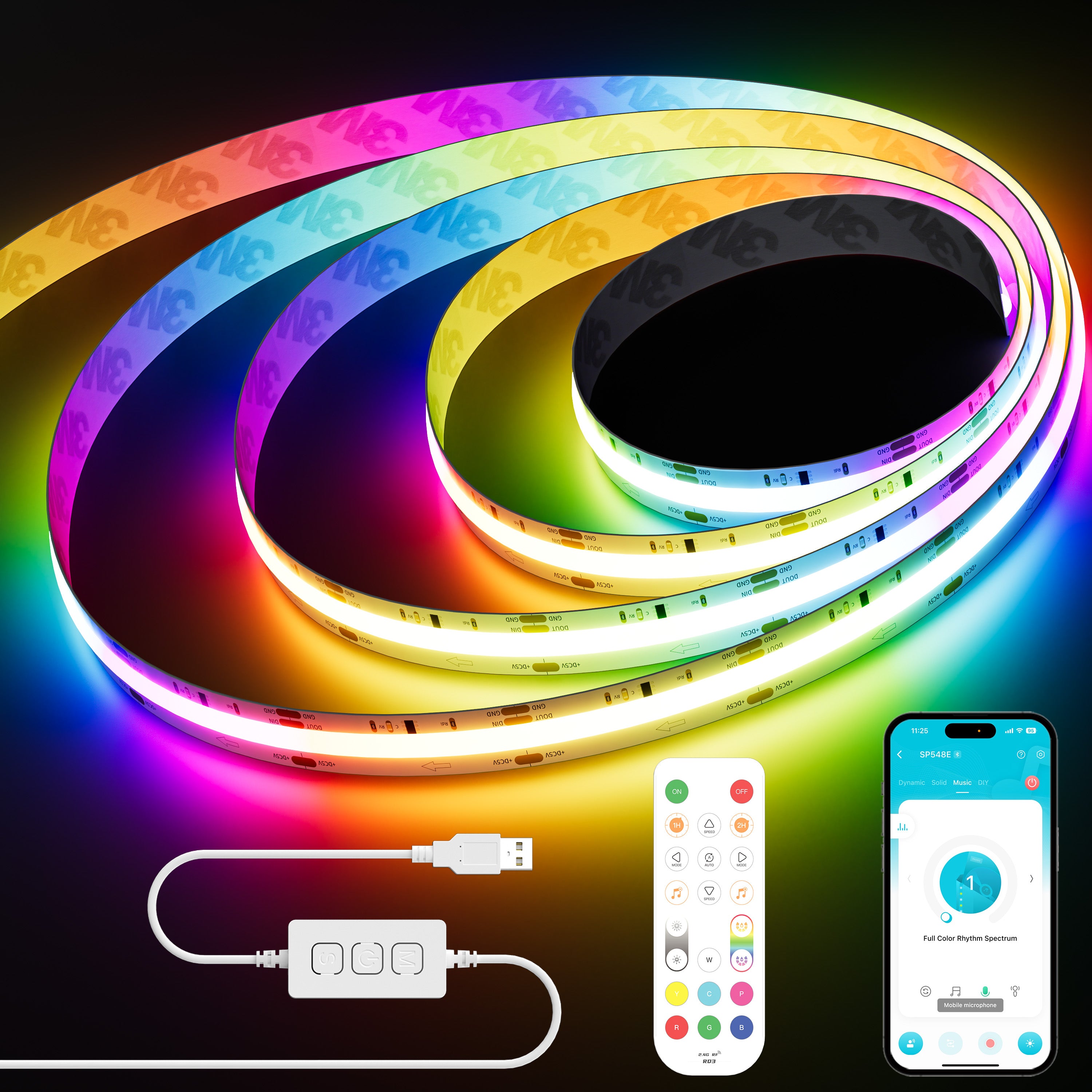 - Three Control Methods: Support smartphone APP control, 2.4G remote control and one-button switch of the control box. You can choose any brightness and any color temperature between 2700K and 6500K through the APP. The remote control with built-in 17 brightness levels has 14 preset color temperatures, which can be switched at will by pressing the two buttons "CCT+" and "CCT-". The RF remote control means you can control your strip lights from any angle within 30m/99ft of an open area!