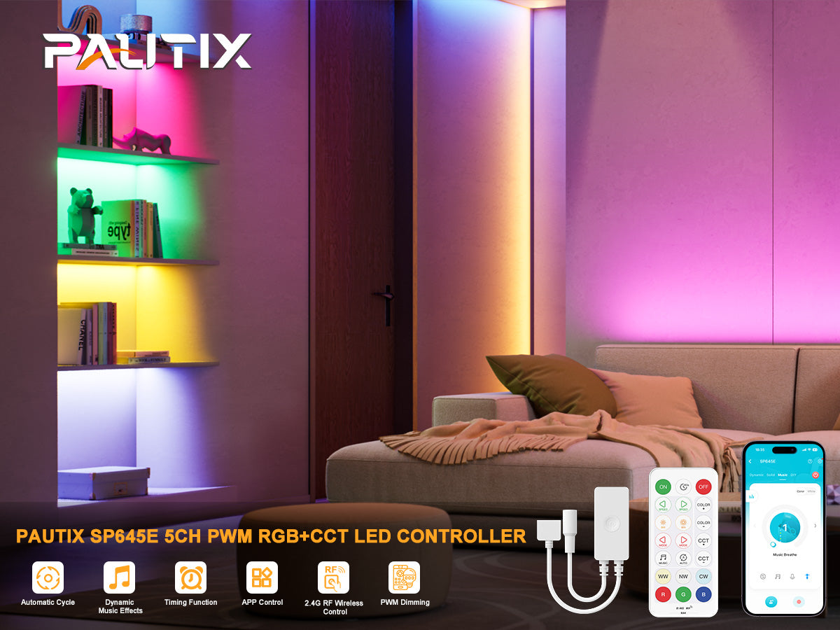 • Compatibility: ONLY compatible with PAUTIX RGB+CCT COB LED strips. Input voltage: DC5-24V. PWM single channel maximum output current: 2A. Total support for maximum output current 6A (PAUTIX 6-pin RGB+CCT 2700K-6500K COB LED strip light).