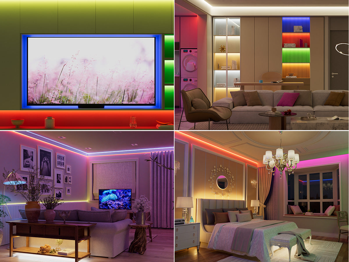 • Three Control Methods: Support smartphone APP control, 2.4G remote control and one-button switch of the control box. You can choose any brightness and any color through the APP. The remote control with built-in 17 brightness levels can be switched at will by pressing the two buttons "BRI". The RF remote control means you can control your strip lights from any angle within 30m/99ft of an open area!