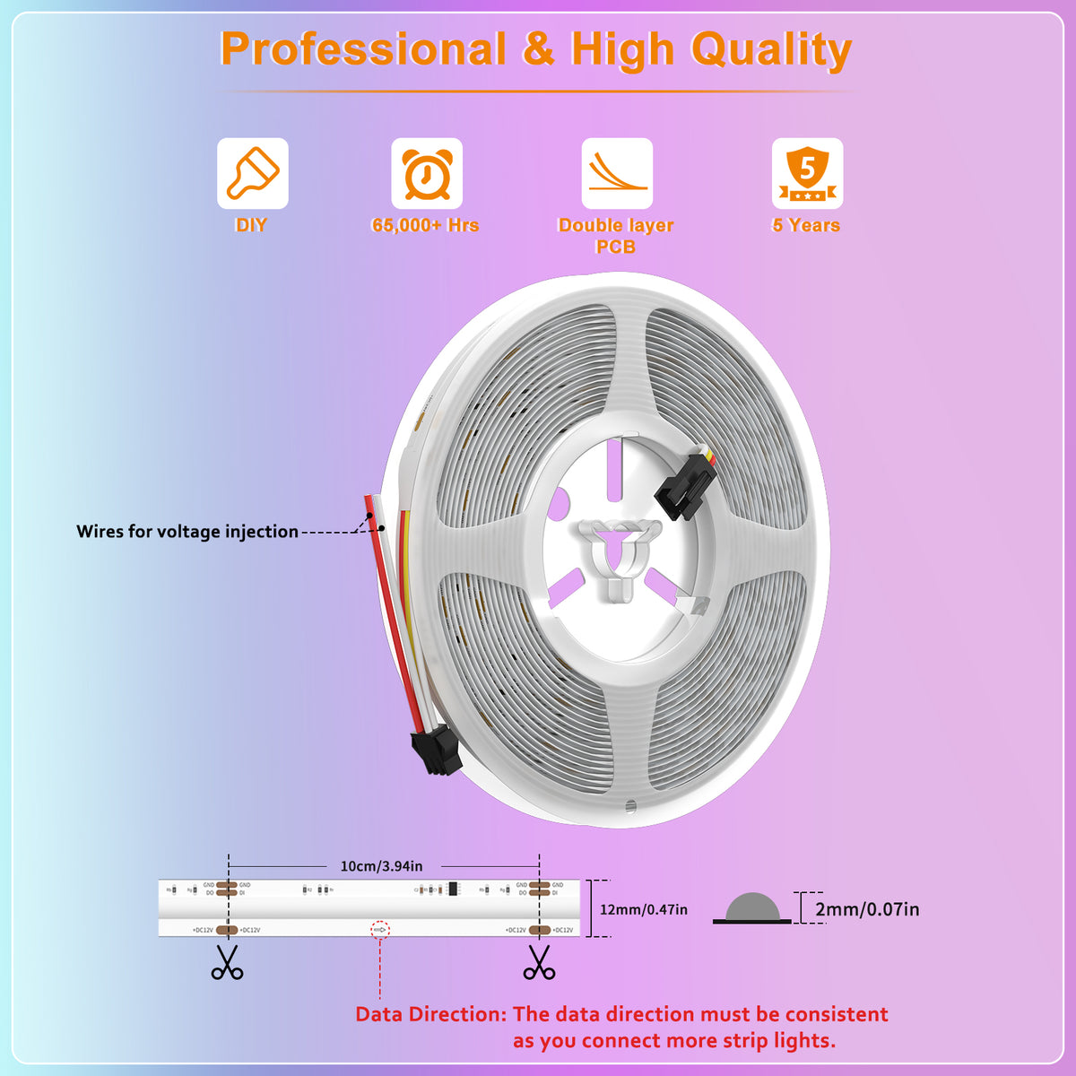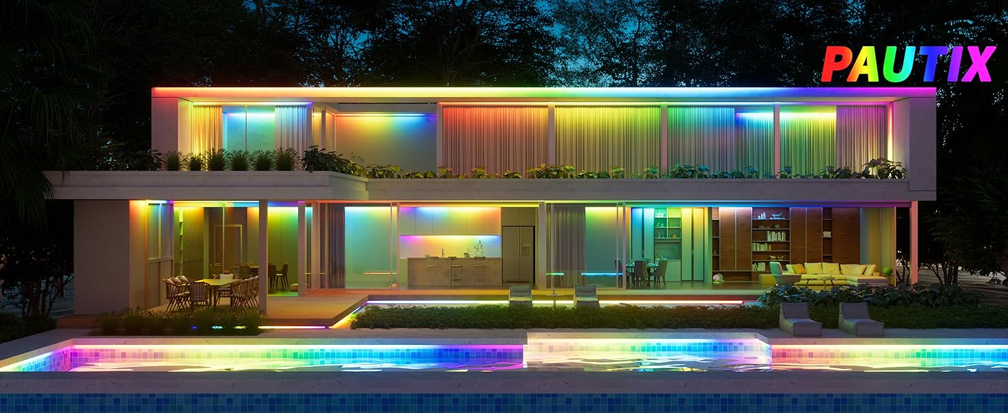 - UL LISTED&DOUBLE LAYER PCB: PAUTIX RGB Smart IC COB LED strip light is UL listed, with higher product quality! The RGB Smart IC COB LED strip light made of double-layer pure copper PCB board has better conductivity and heat dissipation effect. The strip light is not easy to crack, and the product is durable with a lifespan more than 65000 hours!
