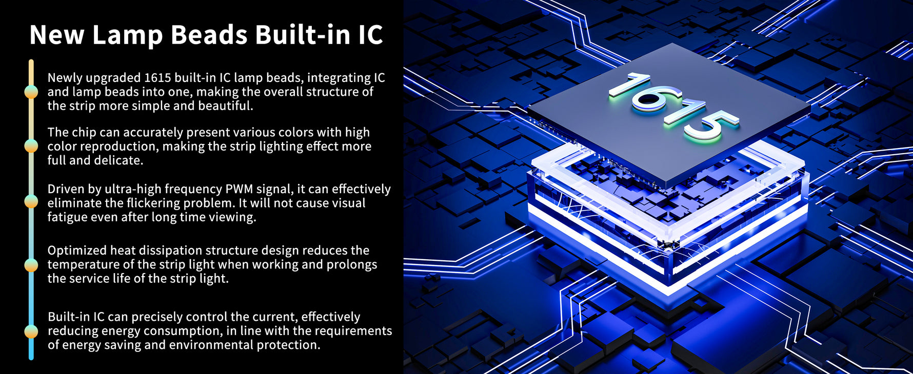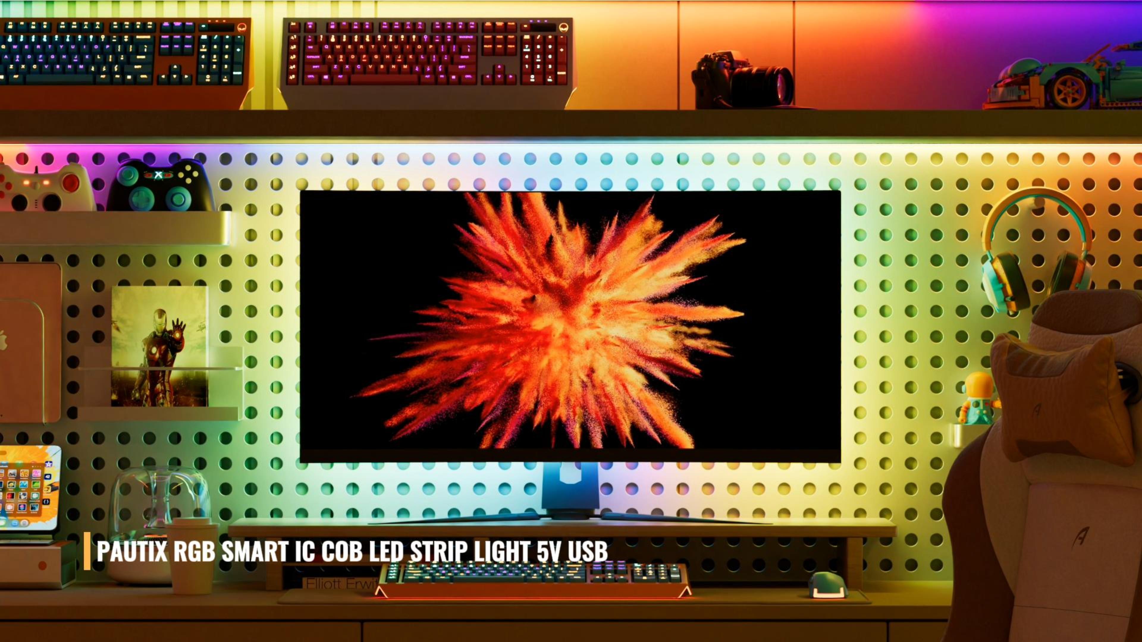 Unit price per【STUNNING RGB EFFECT】PAUTIX RGB smart IC COB USB LED light strip with built-in lamp bead IC, 90 ICs/m (180 ICs in total), IC model is 1615, creates brighter, ultra-uniform lighting performance, very suitable Reduces eye strain in bright screens and dark surrounding areas. Unlike ordinary RGB LED light strips, PAUTIX RGB smart IC COB (chip on board) LED light strips can continuously chase multiple colors. Strip lights create a rainbow-like (dreamy color) effect to reinvent your holiday decor