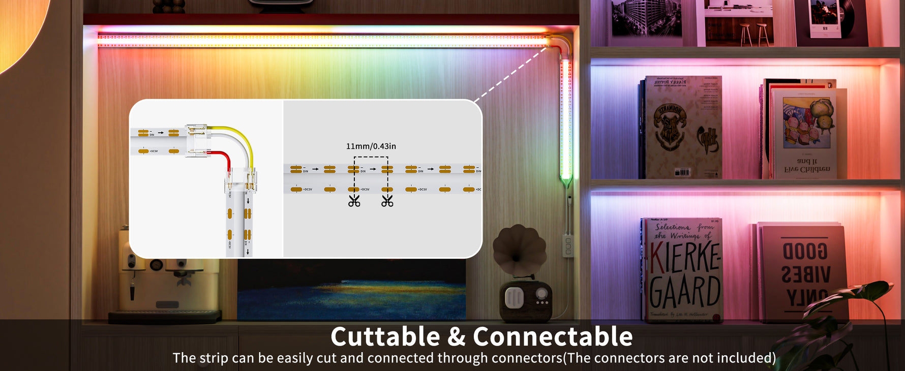 【Long Lifespan and Easy to Install】The PCB board is made of real double-layer thick copper, long lifespan and suitable for daily use, and uses genuine 3M self-adhesive to adhere more firmly to clean/dry/smooth surfaces. The flexible design allows you to bend the COB light strip into your DIY shape. Addressable RGB Smart IC USB COB LED Strip, High Brightness, PAUTIX 6.56ft USB RGB Smart IC COB LED Strip can be cut or connected along the cutting marks (middle of the copper sheet) on the strip, you can re-conn