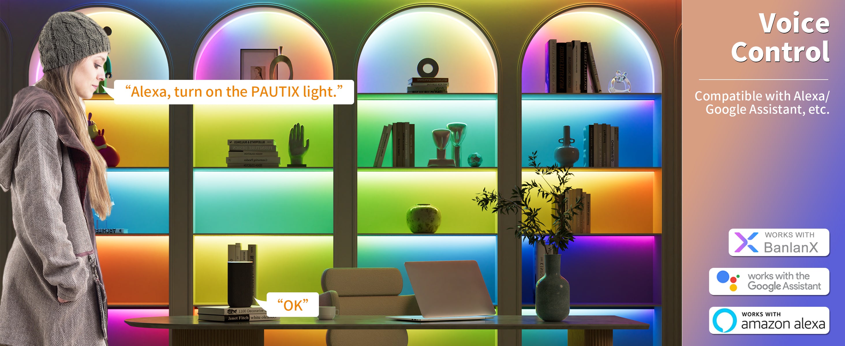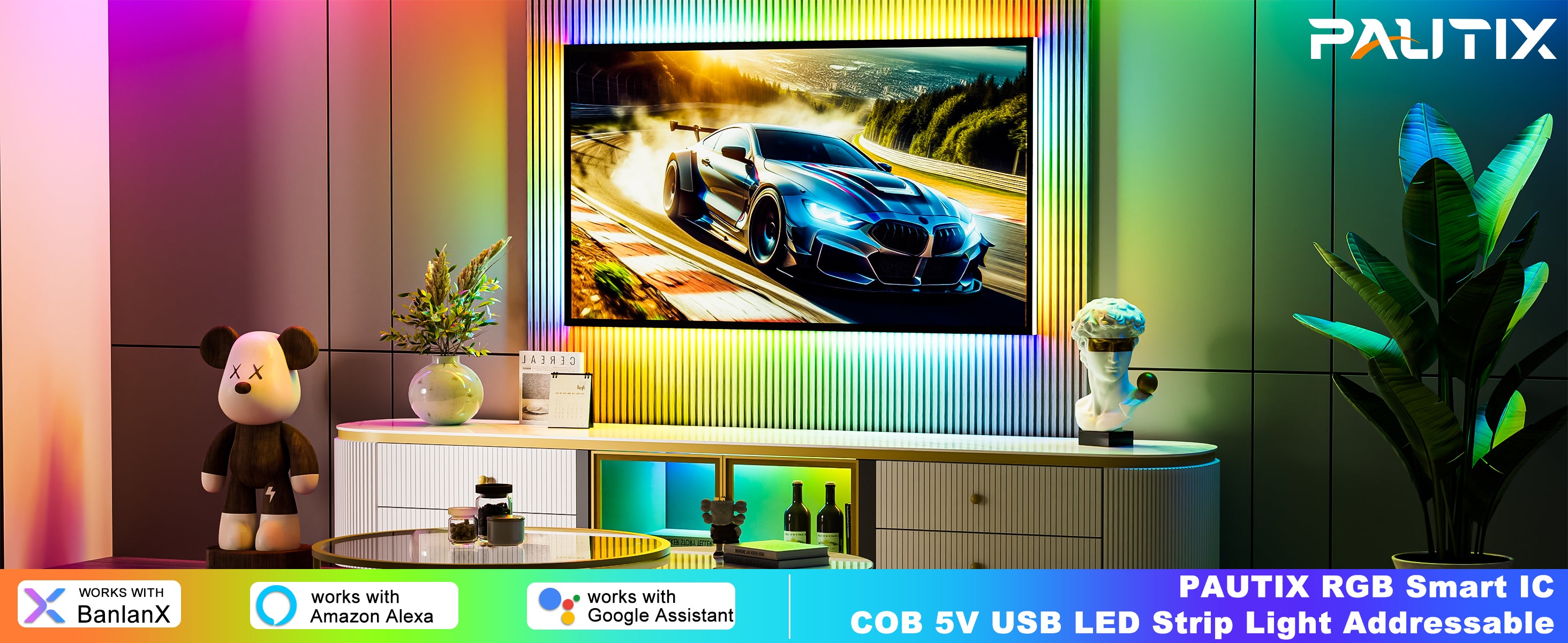 PAUTIX 5V USB RGB Smart IC COB LED Strips Light,6.56ft/2m,Work with Alexa/Google Assistant