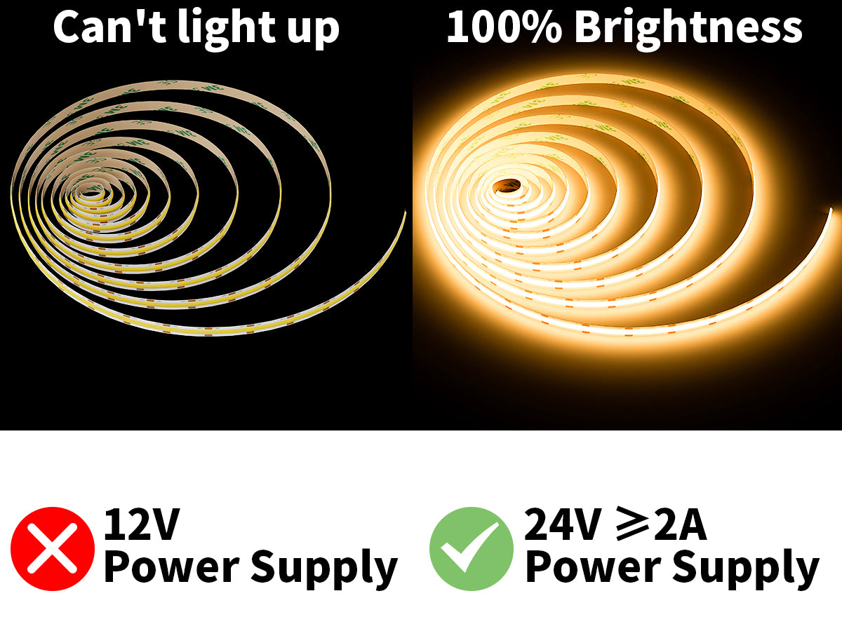 • 【COMPATIBLE ACCESSORIES】It can be dimmed with a single color dimmer, search for "PAUTIX RF dimmer for single color led light" to find the matching dimmer. Compatible with most Wi-Fi dimmers, Bluetooth controllers, RF remotes or IR controllers, etc. Compatible with 24V 2A or higher power supply (1.83-2.13 watts increase in rated power for each additional foot of strip length). Note:This COB strip light does not include power adapter and remote control