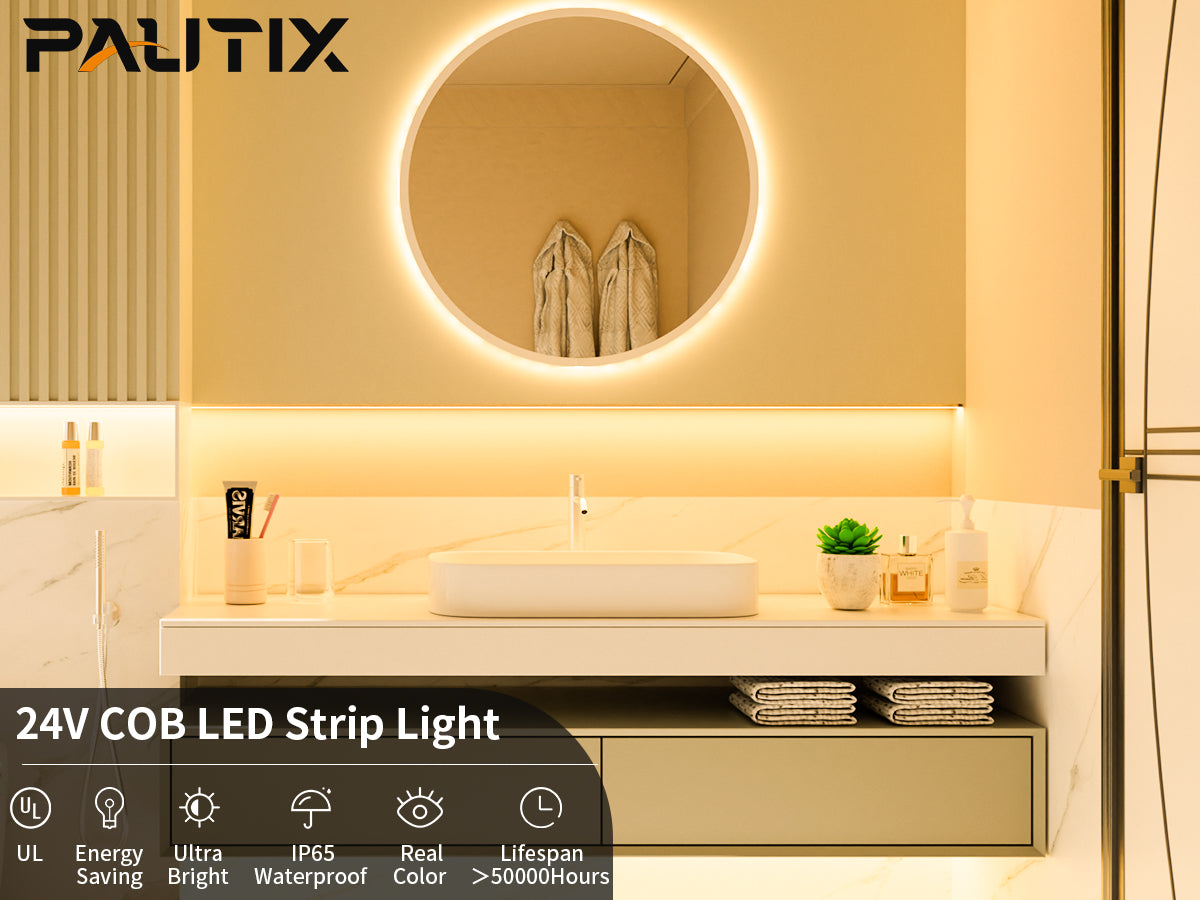 With a stronger 3M adhesive,PAUTIX COB LED strip lights can be reliably installed on mirrors, walls, cabinets and other places that need decoration