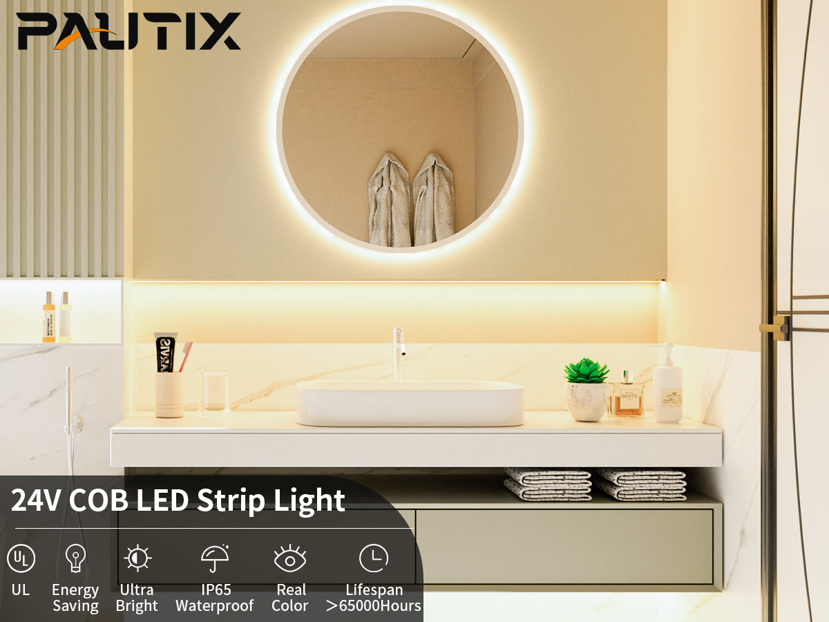 - 【HIGHLIGHTS OF IP65 WATERPROOF COB STRIPS】Different from the common PAUTIX COB LED strips, the IP65 COB LED strips have a Very thin PVC heat shrink tubing added to the outer layer to protect the COB strips from splashing water. Ideal for installation in bathrooms or scenes with slight moisture.Without the dark spots of 2835,5050,5630 and other SMDs,the upgraded design of 504 LEDs per meter and a beam angle of 180 degrees makes the COB strip lighting performance smoother and more uniform