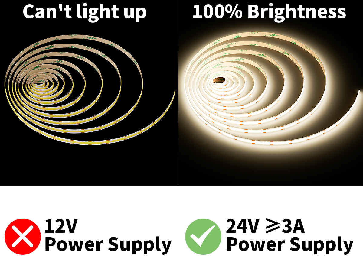 🙌The working voltage of the strip light is DC24V, other voltages are not applicable! Calculate the required wattage according to the length of the strip light, and then choose the correct 24V power supply. (Wattage ratings for strips are included in the product parameters)