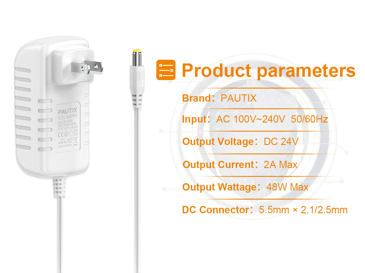 PAUTIX 24V DC Power Supply Adapter 2A 48W
