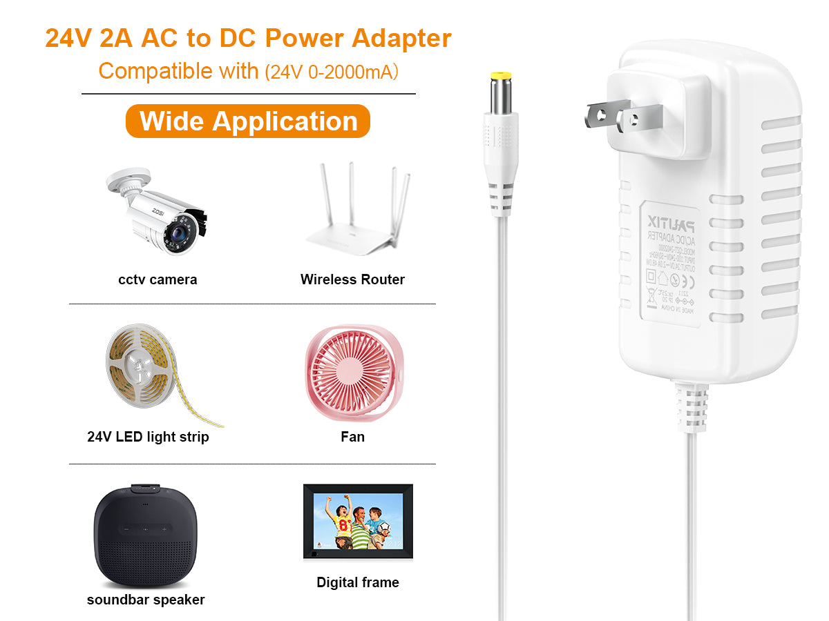- 【High Quality Power Supply】Input: AC100-240V, 50/60Hz 0.45A; Output: DC24V 2A (48W), 3.28ft/1m power cord.
