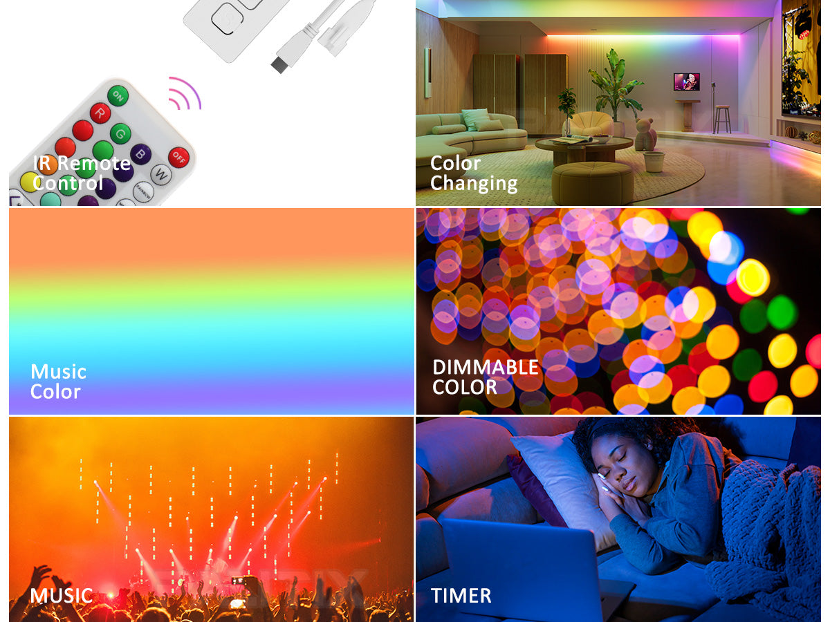 - Timer function:Up to 5 timers can be set. Timer function you can set the same time every day to light up the ribbon and you can choose the light effect to be lit up. The controller can not cut off the power, otherwise it will clear the alarm record. Up to 5 timers can be set. With memory function in case of power failure.