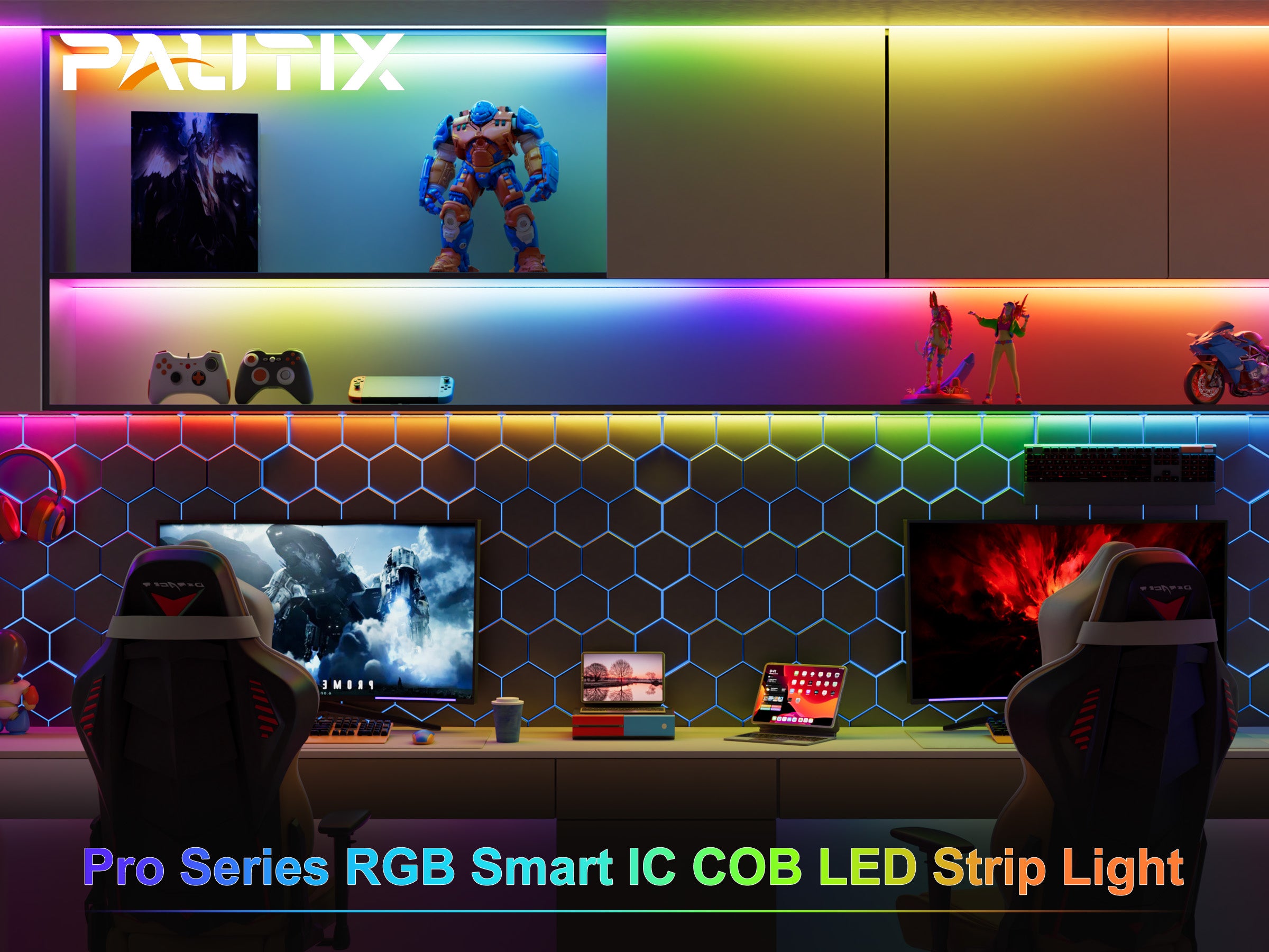 • UL LISTED&DOUBLE LAYER PCB: PAUTIX RGB Smart IC COB LED strip light is UL listed, with higher product quality! The RGB Smart IC COB LED strip light made of double-layer pure copper PCB board has better conductivity and heat dissipation effect. The strip light is not easy to crack, and the product is durable with a lifespan more than 65000 hours!
