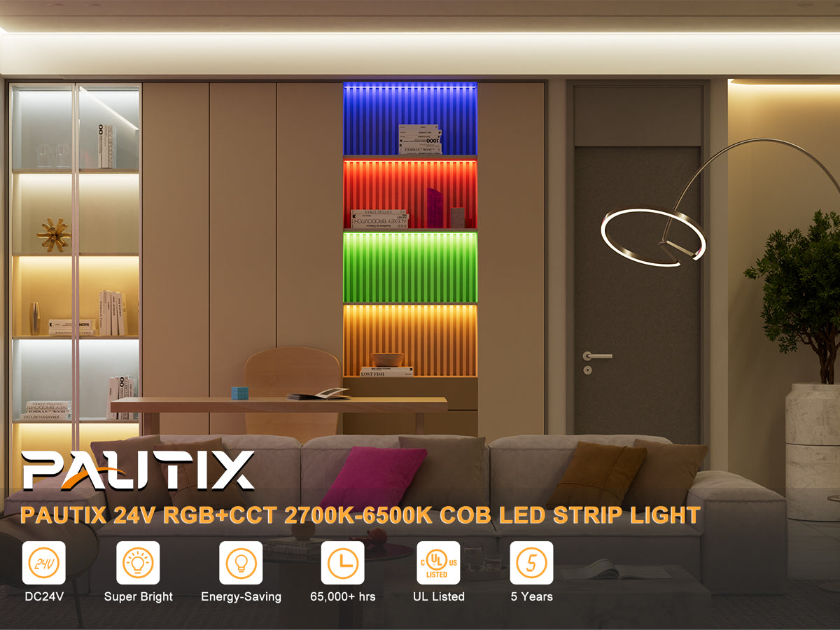 - Dual Version: Are you still looking for a color version with both RGB and a CCT adjustable version with 2700K-6500K? Choose PAUTIX RGB+2700K-6500K COB LED strip light to meet your needs! The dual version design can be used as both an ambient light and an auxiliary lighting, eliminating the need to worry about installing multiple types of LED strip lights.