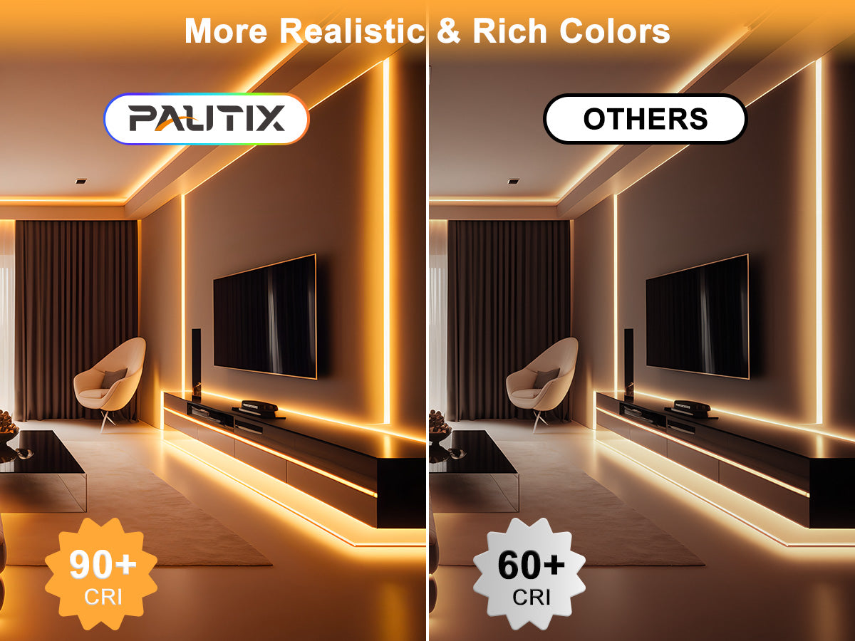 - Wide Application:Colorful and dreamy atmosphere lights can provide great help for your life and entertainment! It not only makes you relax but also enriches your life! PAUTIX RGB+CCT COB LED strip light is very suitable for installation in many scenes such as home, bar, entertainment hall, coffee shop, party, dance, etc.