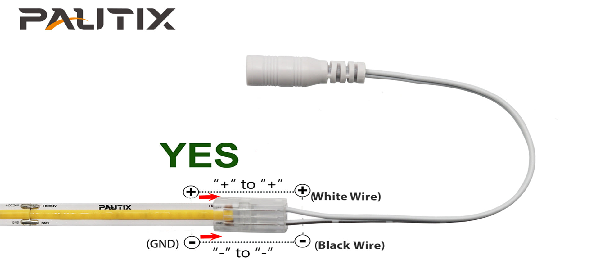 - DC connector use 8mm strips ,Works with dimmable strip lights.