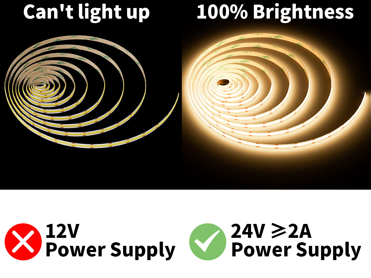 🙌The working voltage of the strip light is DC24V, other voltages are not applicable! Calculate the required wattage according to the length of the strip light, and then choose the correct 24V power supply. (Wattage ratings for strips are included in the product parameters)